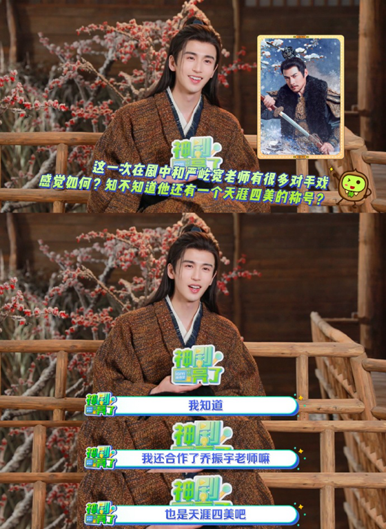而张凌赫作为当下古装圈热门小生,不仅凭借俊朗古装造型跻身“新天涯四美”(网友热议名单含龚俊、罗云熙、张凌赫、丁禹兮),还意外解锁了与老牌四美前辈的合作成就。他在宣传中透露,自己与天涯四美已有两次合作,首次搭档是在古装剧《四海重明》中,与乔振宇饰演师徒,两人对手戏默契十足,也让他收获了不少前辈的指导。