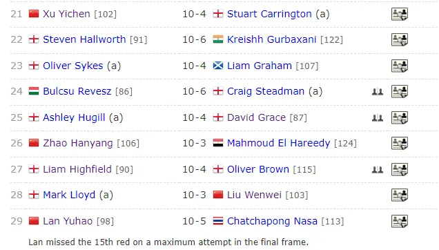 这样的比分优势,让赵瀚洋已经拿到八九成希望,正常发挥晋级无忧。今天凌晨2:00开始的的第二阶段,赵瀚洋继续强势发力,他又打出一波3-1攻势,总比分10-3将将马哈茂德-埃尔-哈雷迪淘汰出局。